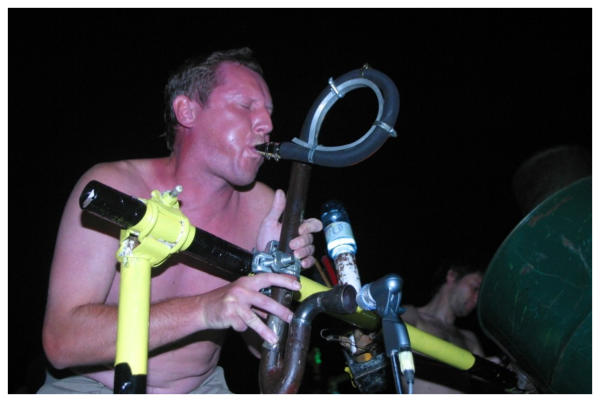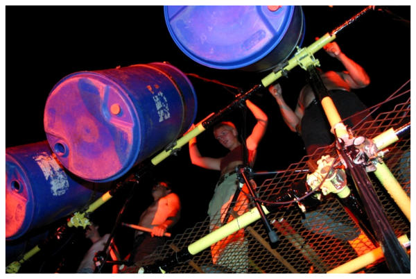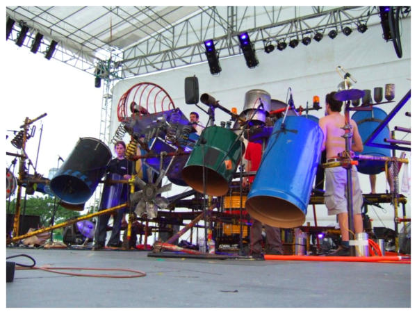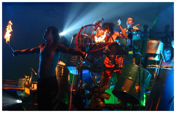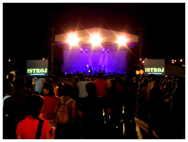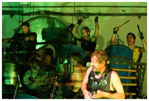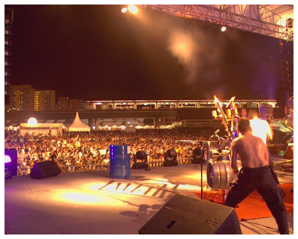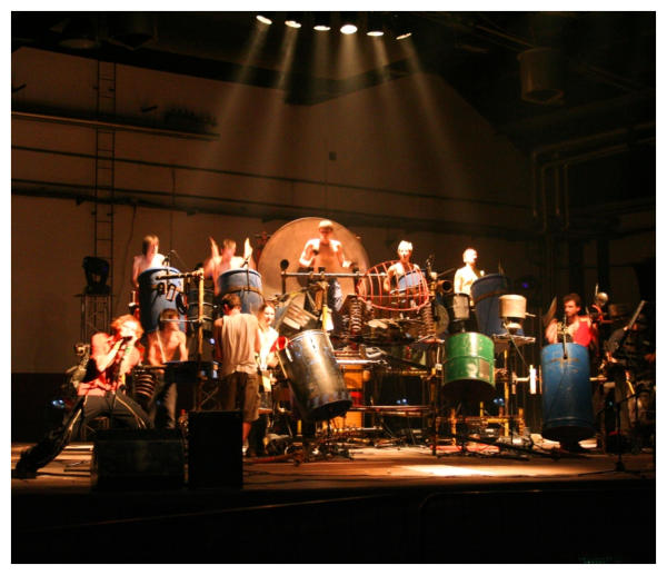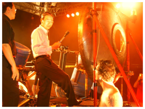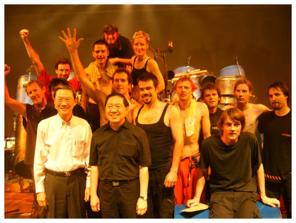 SINGAPORE ART FESTIVAL 2005In June 2005 The Stroj took part on closing celebration of Singapore Art festival 2005 where they performed two nights in a row. Their final show was visited by Singapore Minister of Culture Dr. Lee Boon Yang who was so excited he climbed on the stage after performance and tried to play some instruments of The Stroj. Photo: Matjaž Madjar, Primož Oberžan, Aleksij Kobal