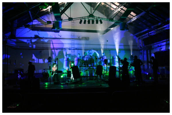 RAILWAY MUSEUM, LJUBLJANA 2006In June 2006 The Stroj released their 3rd album 'Cona / The Zone'. The main promotional event was held in Railway Museum Ljubljana, one of the most impressive industrial heritage buildings in Slovenia. For this special event The Stroj crew also modified an old railway cistern and used it as an giant instrument with strings and percoussions inside. Photo: Silvo Privšek and BAX