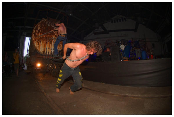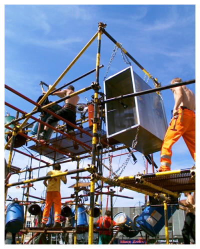 RIVERSIDE FESTIVAL, STOCKTON 2003The Stroj took part of Riverside festival in Stockton for the first time in August 2003. This was their second performance in the UK after their performance in Leeds a few days before. Photo: Aleksij Kobal